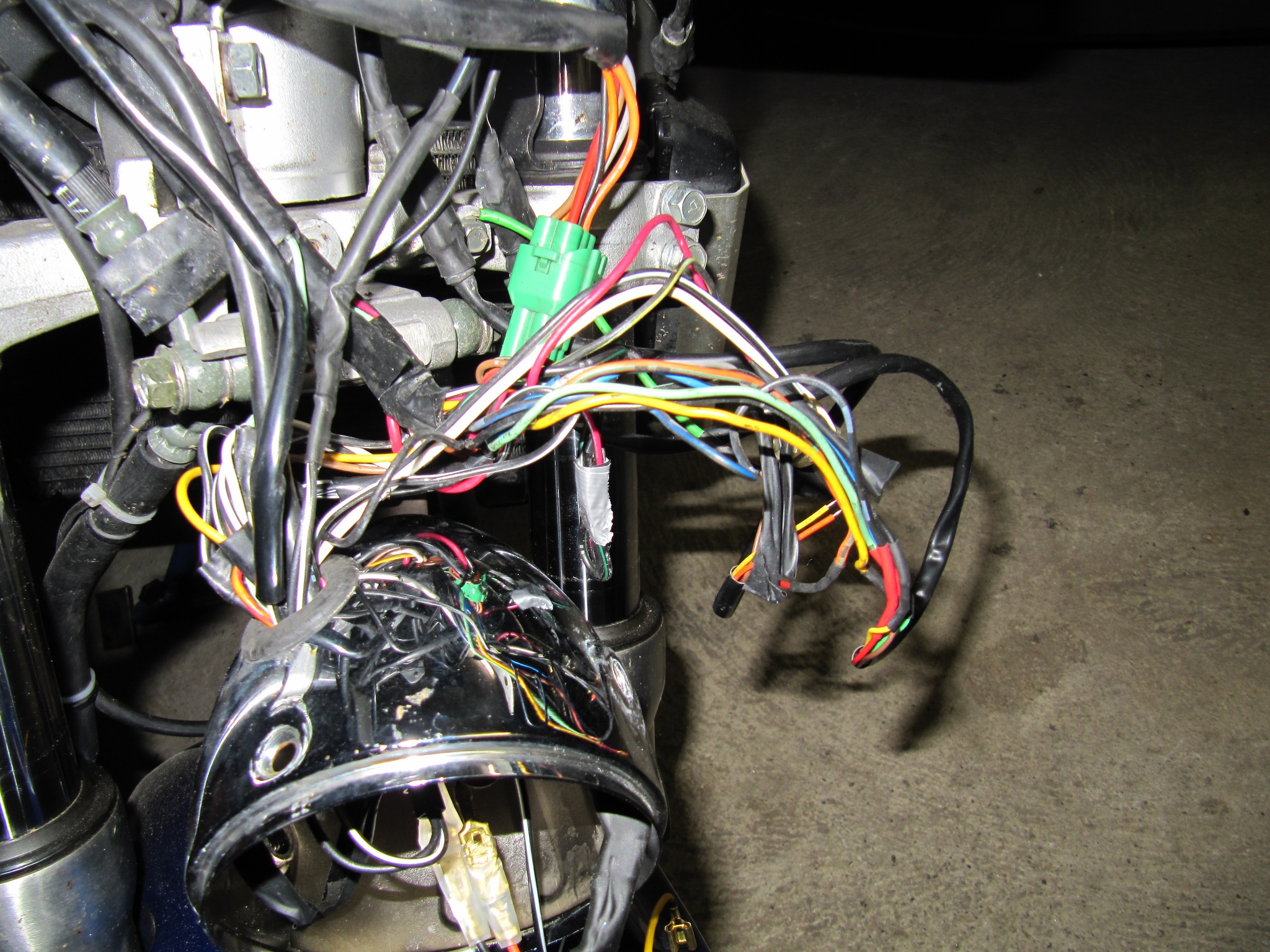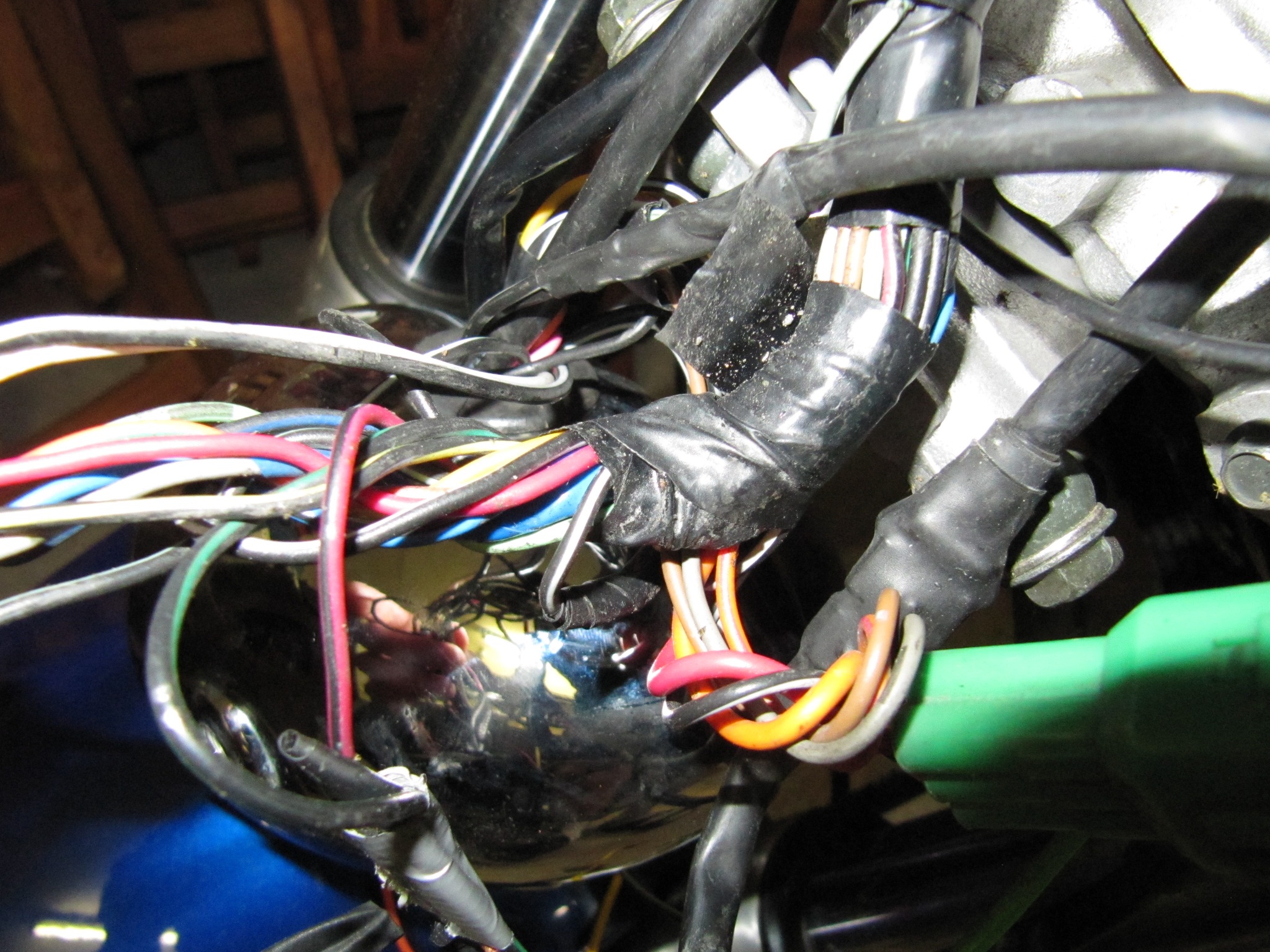 Der Vorbesitzer hat vorne am Kabelbaum einen ziemlichen Murks veranstaltet.
