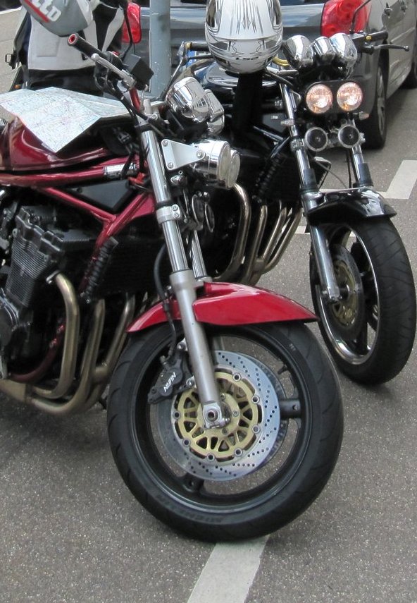 Der Tacho der dran ist, ist nicht der orginale. Jedoch ist mir dieser während der Fahrt ausgefallen und ich habe mir einen gebrauchten Orginalen gekauft, also hätte ich da ja die Stecker. Blinker sinds einfach Miniblinker und Scheinwerfer sind wie auf dem Bild zu sehen die vorderen. Also ist halt jetzt an anderes Motorrad aber die sehen so aus, wie die der Roten.