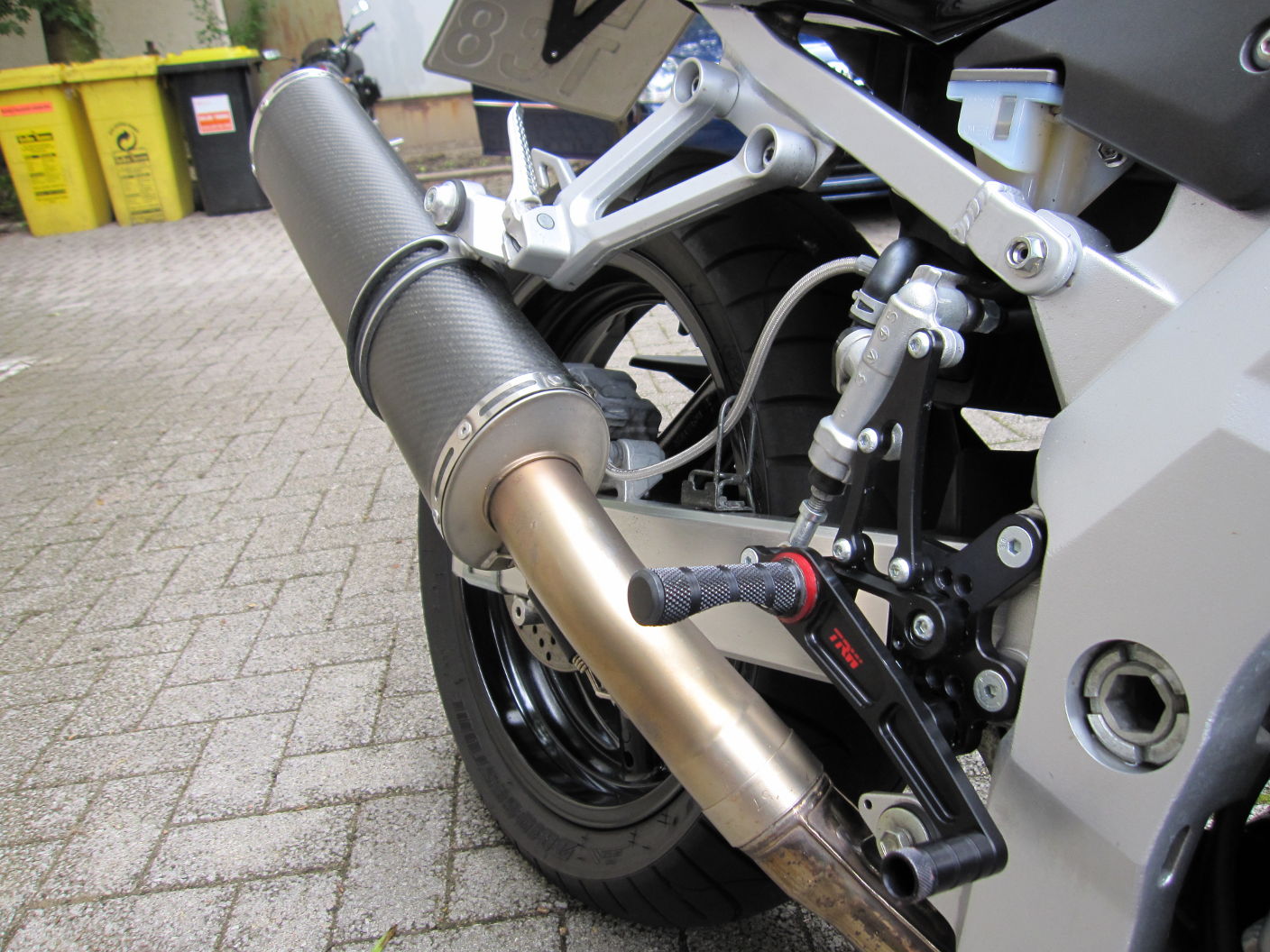 Die rechte Platte passt auf beiden Seiten (jeweils gedreht)...(mal davon abgeseheņ dass jetzt mein Auspuff nicht mehr passt..