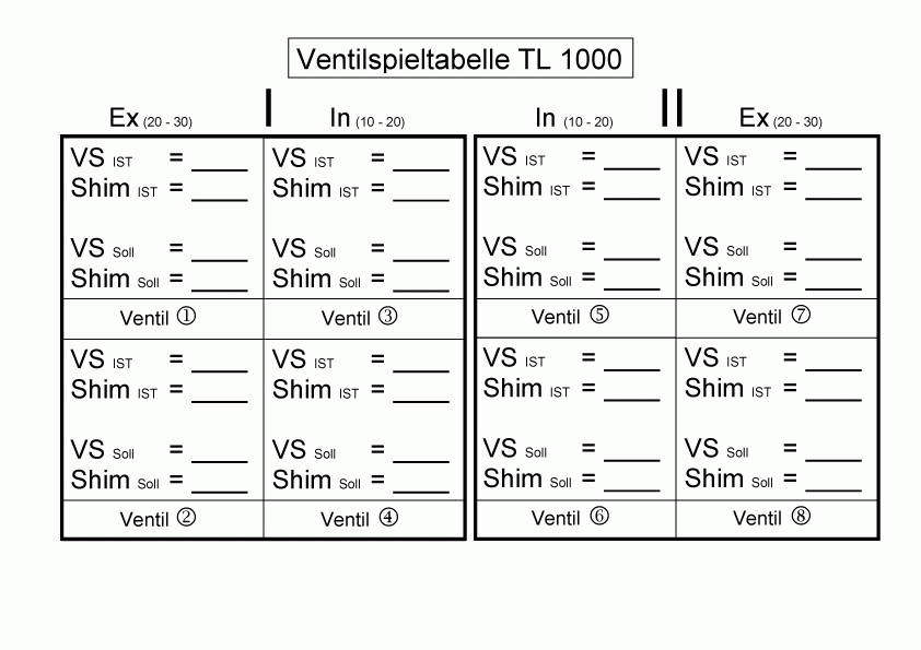 Ventilspiel laut Anleitung: Einlass: 0,10mm-0,20mm, Auslass 0,20mm-0,30mm
