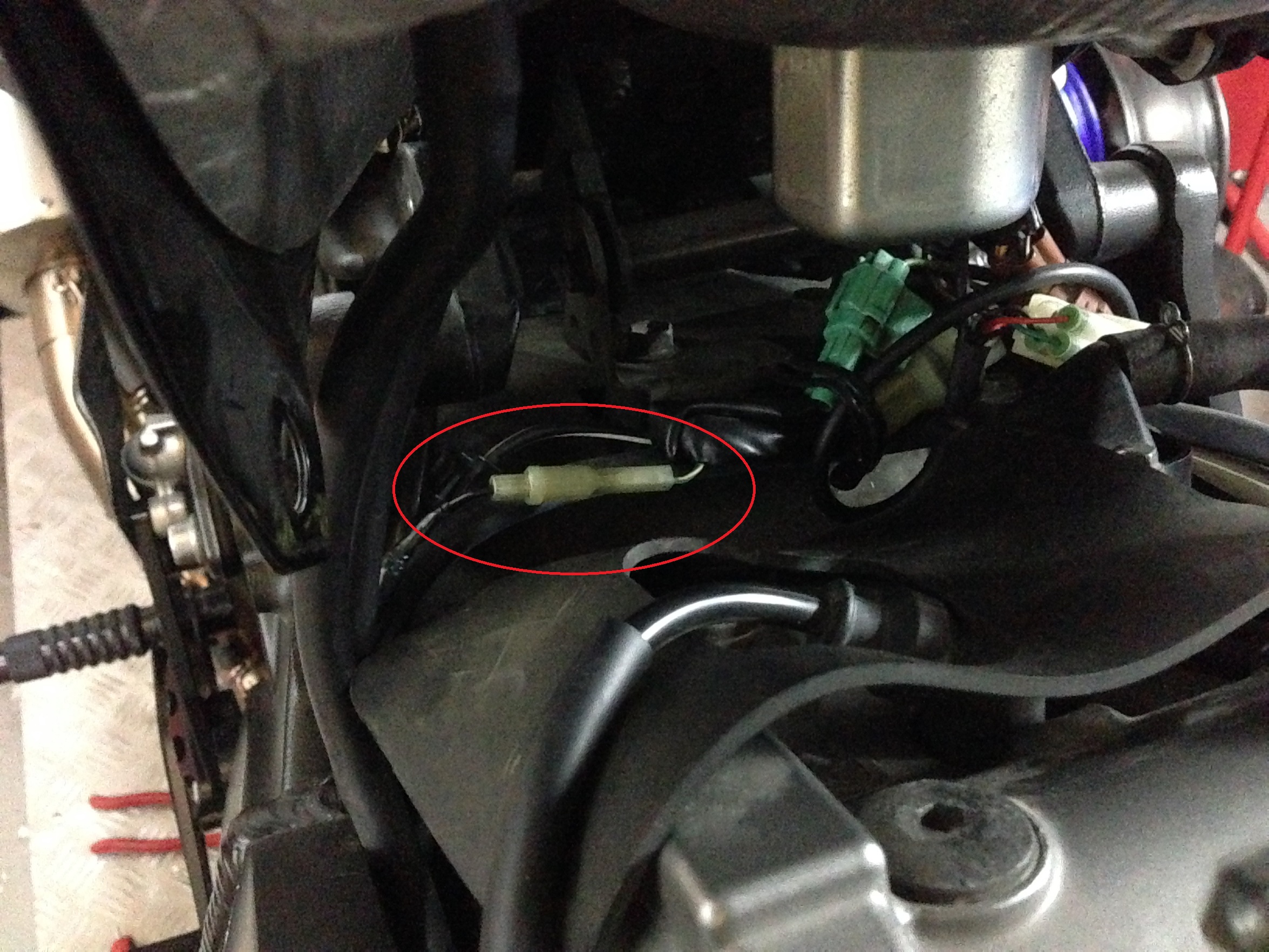 Bin leider noch nicht weitergekommen, habe lediglich unter dem Tank eine Steckverbindung gefunden, die offensichtlich nach der Installation des PC III von der Werkstatt nicht wieder zusammen gefügt wurde. Ist so ein oller Stecker, den ich mit meinen 'Wurstgriffeln' nicht wieder getrennt bekomme. Kann mir einer sagen ob die überhaupt korrekt ist? Waren die einzigen beiden nicht belegten Stecker und passten auch logisch ineinander (s. Bild). Seltsam sind nur die Kabelfarben. Auf der einen Seite grün/gelb (oder weiß?), auf der anderen schwarz. Die Lampe brennt allerdings noch immer...