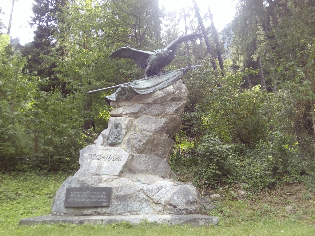 Irgendwo zwischendurch fahre ich raus, ne Brücke über den Inn, ich muß mal stehen bleiben; Die Stelle habe ich gut gewählt, dort steht ein Denkmal das an die Tiroler Freiheitskriege erinnert.