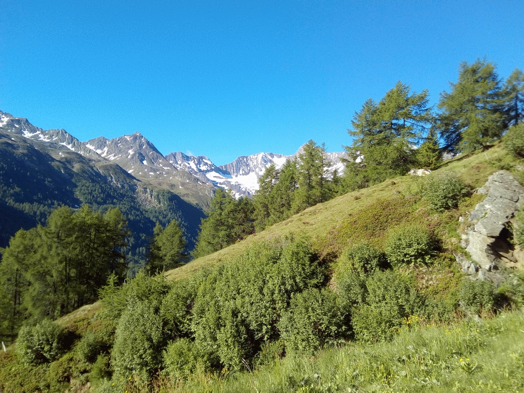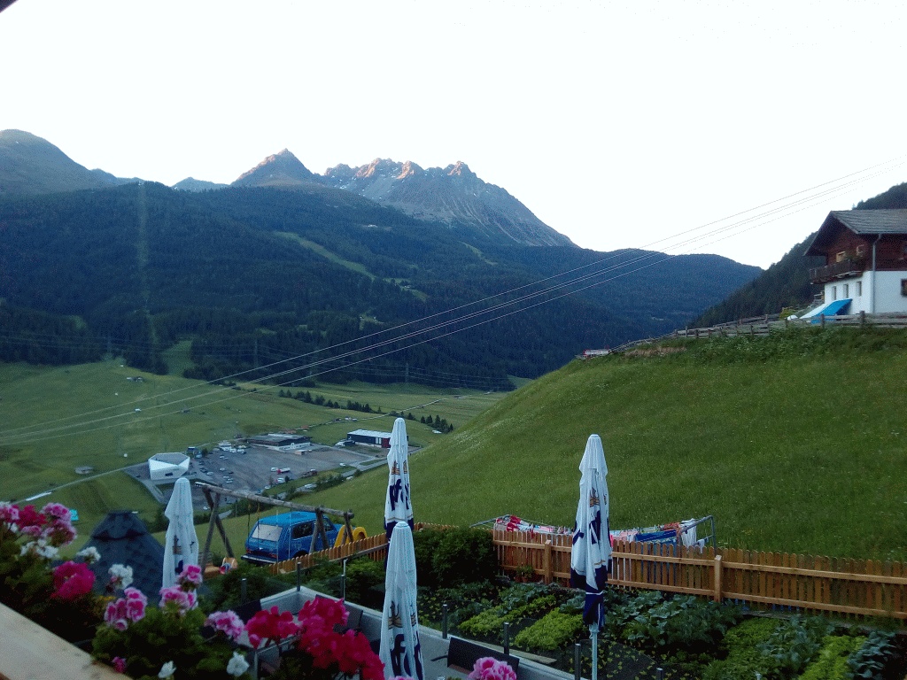 Der Riatscherhof liegt an der Straße die von Nauders über die Norberthöhe Richtung Schweiz führt, genau sehe ich mir die Sache nicht auf dem Blindschirm an. Ich biege richtig ab, folge dem Schild Richtung Pension und warte daraus daß irgendwo das nächste Schild hängt, ich sollte irgendwo links abbiegen…das Schild kam nicht.