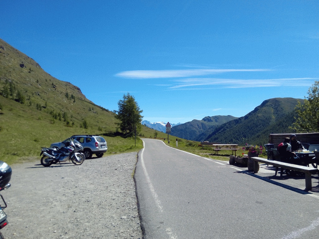 Weiter Richtung Reschenpass, viel Verkehr, nicht abreißen wollende Motorradkolonnen, zum Glück im Gegenverkehr, stationäre Blitzomaten und rumlungernde Kieberer, aber die Warnkette funktioniert, man bekommt sowas immer vorher vom Gegenverkehr mittels Lichthupe mitgeteilt. Einerseits toll, andererseits bremst damit natürlich der aktuelle Trottel, der die Kolonne anführt, auf freier Strecke auf 80 – 90 ab.