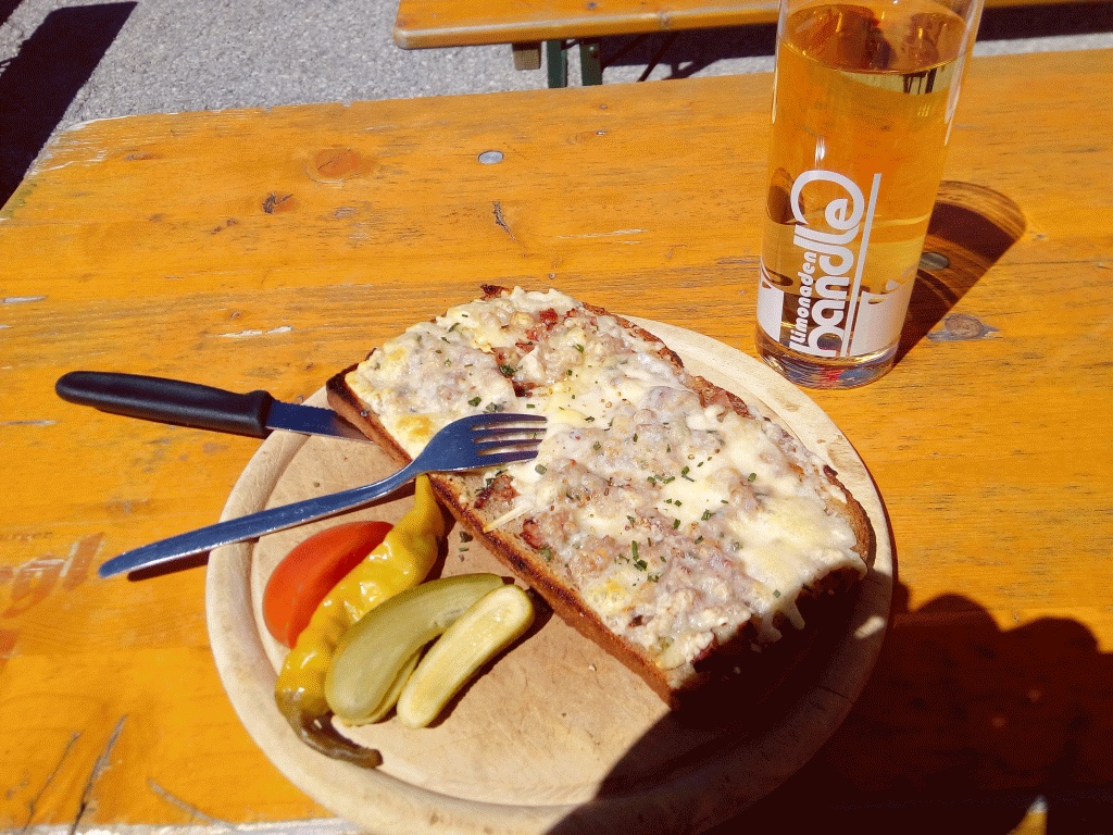 Duschen, Abendessen, es gibt Tiroler Gröstl mit Spiegelei für alle, davor wer mag nen Salat und danach ein Eis. 3 Bier dazu, Flüssigkeitsverlust ausgleichen, ab ins Bett.