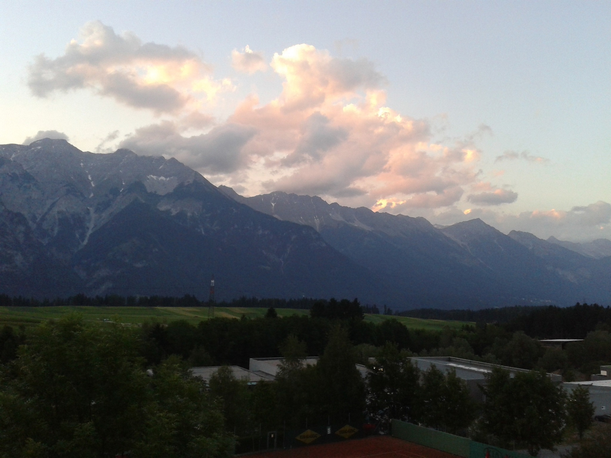 Wie sich im Nachhinein herausstellte, hatten wir die 10-Tages-Vignette umsonst gekauft. Dann weiter nach Salzburg - die Stadt ist unheimlich schön - und über den Luegpass nach Innsbruck. Kurz hinter Innsbruck hatten wir eine mehr als großzügige Unterkunft mit 4 Zimmern und diesem Blick von der Terrasse:
