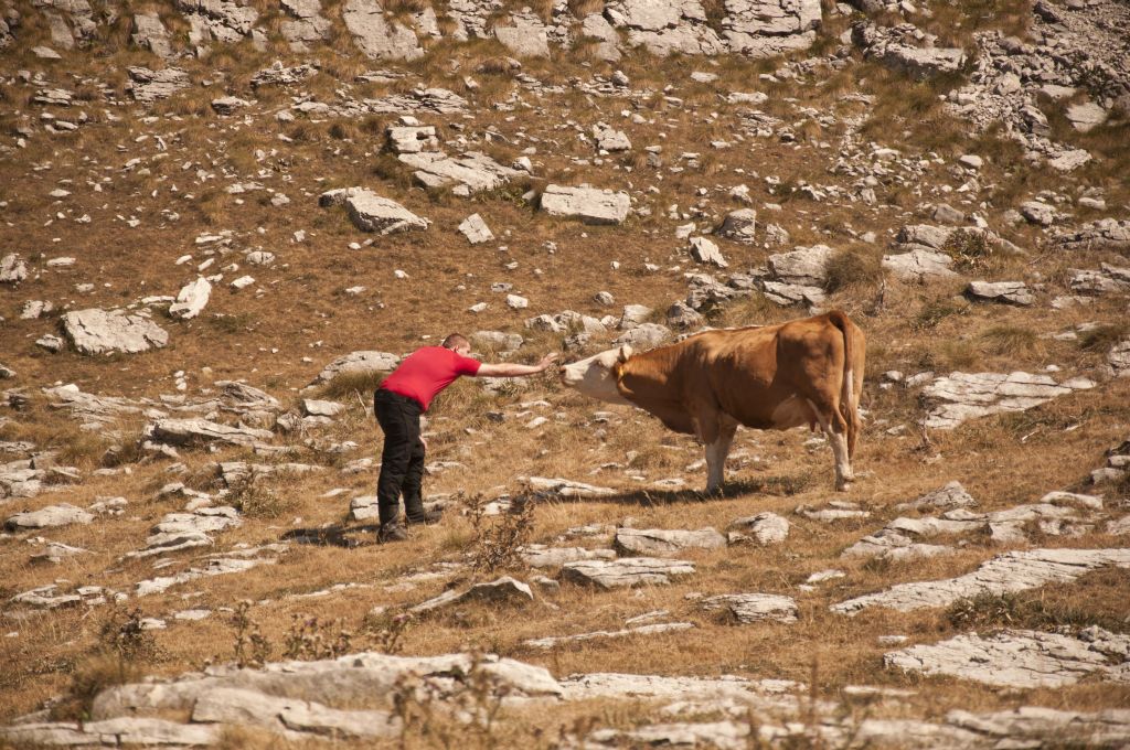 Während ich mich mit photographieren beschäftige, versucht sich mein Kollege mit den Kühen anzufreunden. Ein wenig erfolgreiches Unterfangen - diese scheinen den Kontakt mit Menschen nicht allzu sehr gewohnt zu sein.