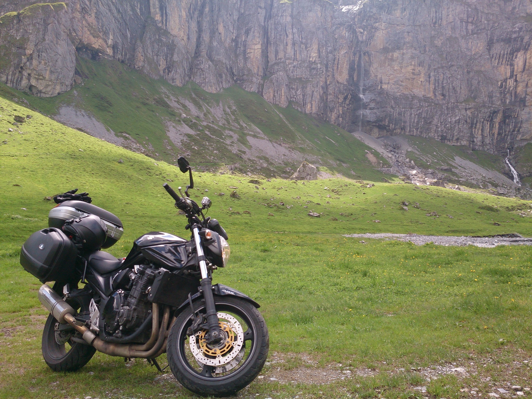 Selig kamen wir in der Schweiz an, genauer gesagt in Flumserberg, einem wohl recht bekannten Skitourismusort. Da das recht weit oben liegt, ändert sich das Wetter dort gefühlt alle paar Minuten und wir hatten nachts ein ausgewachsenes Berggewitter. Demnach waren am nächsten Morgen die Straßen an vielen Stellen noch nass. Wir fuhren entlang des Walensees und über den Klausenpass. Dort gelangten wir in ein Hochtal, das uns den Atem verschlug