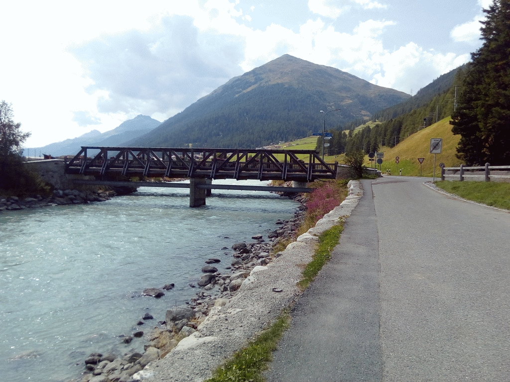 Zernez, der Verkehr wird weniger, weiter Richtung St. Moritz.
