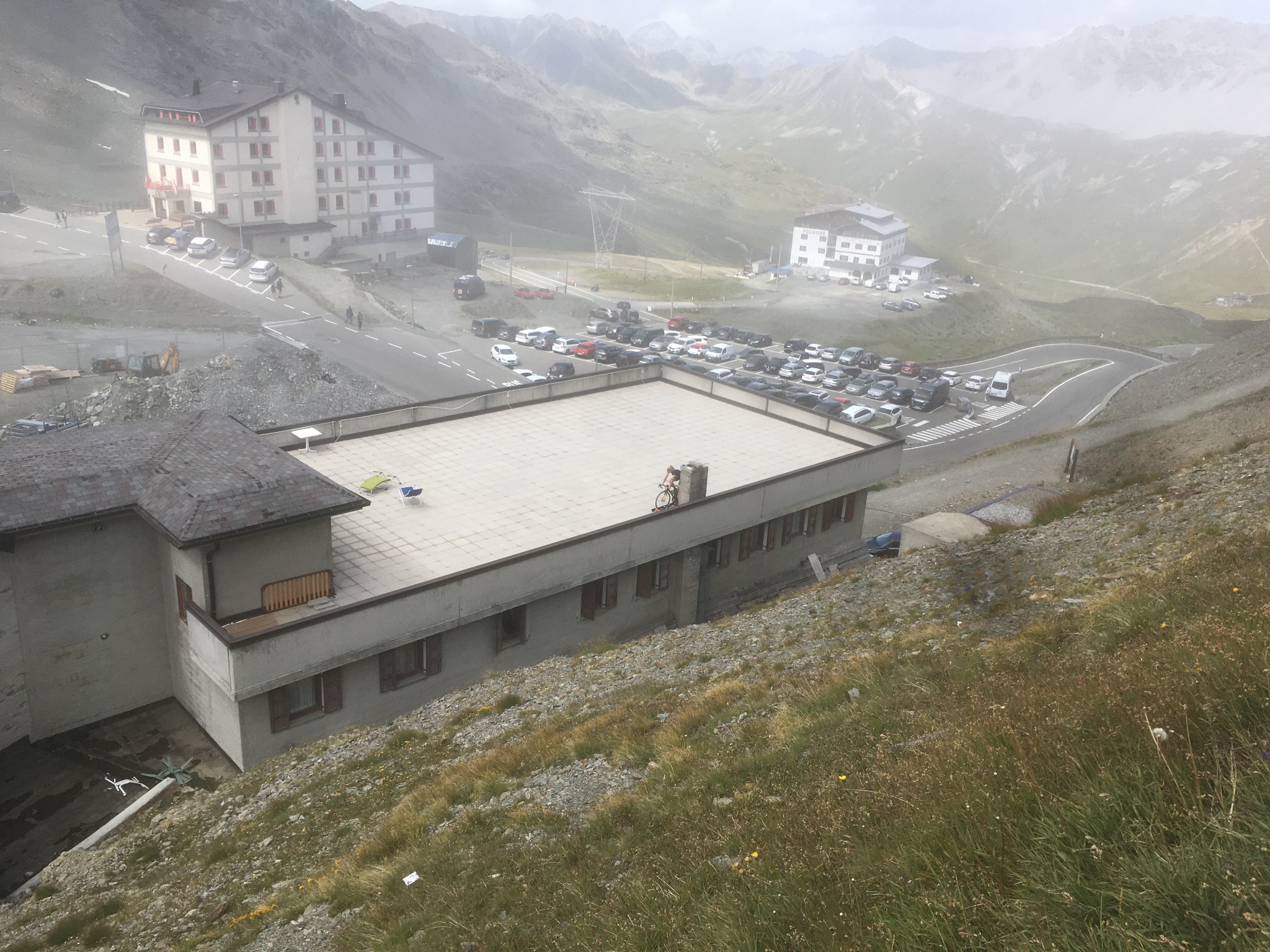 D. und ich sind dann weiter über Bregenz und durch Vorarlberg über den Arlbergpass bis ein Stückchen Richtung Reschenpass hinter Landeck und haben dort übernachtet. Morgens hat es geschüttet ist dann aber besser geworden und am Reschensee schien die Sonne. Also dann über den Reschenpass zum Stelvio. Ich bin dann vor gefahren. Den unteren Teil im Tal fand ich schön zu fahren, als es dann angefangen hat, dass man nur Geraden und enge Kehren, die man teils mit schleifender Kupplung fahren muss (zumindest, wenn man ein Moped hat, bei dem man erst ab 30 sicher sein kann, es nicht abzuwürgen...) abwechselnd hat, hatte ich keinen Bock auf das Gehake -zumal auch noch sehr viel Verkehr war- und habe lieber die phänomenale Landschaft genossen als hochzuballern. D. hat mich dann überholt und ein paar Kehren später sah ich dann sein Moped liegen. Es kam ein Bus entgegen und anstatt auf der Geraden anzuhalten hat er gedacht, der Bus käme schneller rum, so dass er direkt nach ihm fahren könnte. War aber wohl leider nicht so und da ein Bus dort die ganze Streckenbreite braucht, musste er ganz innen in der Kehre anhalten und ist umgekippt, da die Straße so abschüssig war. Es hatte dann noch jemand mit einer S1000XR angehalten und aufheben geholfen. Am Moped war nichts kaputt also weiter den Pass hoch. Der BMW-Fahrer musste auch in die gleiche Richtung und ist dann den Rest vom Tag mit uns zusammen gefahren. Nach dem Stelvio sind wir über den Gavia. Der hat uns allen besser gefallen. Die Straße ist zwar wesentlich schmaler und in viel schlechterem Zustand als der Stelvio aber man kann mehr einsehen und es gibt auch richtige Kurven. Und der Blick auf die hohen Berge war auch besser, wobei das auch am Wetter gelegen haben kann. Danach ging es dann im Bogen südlich Richtung Meran. Erst noch über den Passo Tonnale, der wirklich richtig toll zu fahren war. Schöne Kurvenkombinationen, so dass man einen richtig schönen Rhythmus bekommt. Da konnte man es richtig schön laufen lassen.