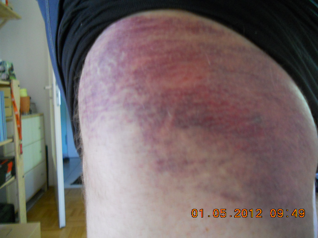 Schutzkleidung so viel wie geht! trotz hüftprotektor gabs diesen blauen fleck vom lenker als der lenkanschlag beim aufprall gebrochen ist!!