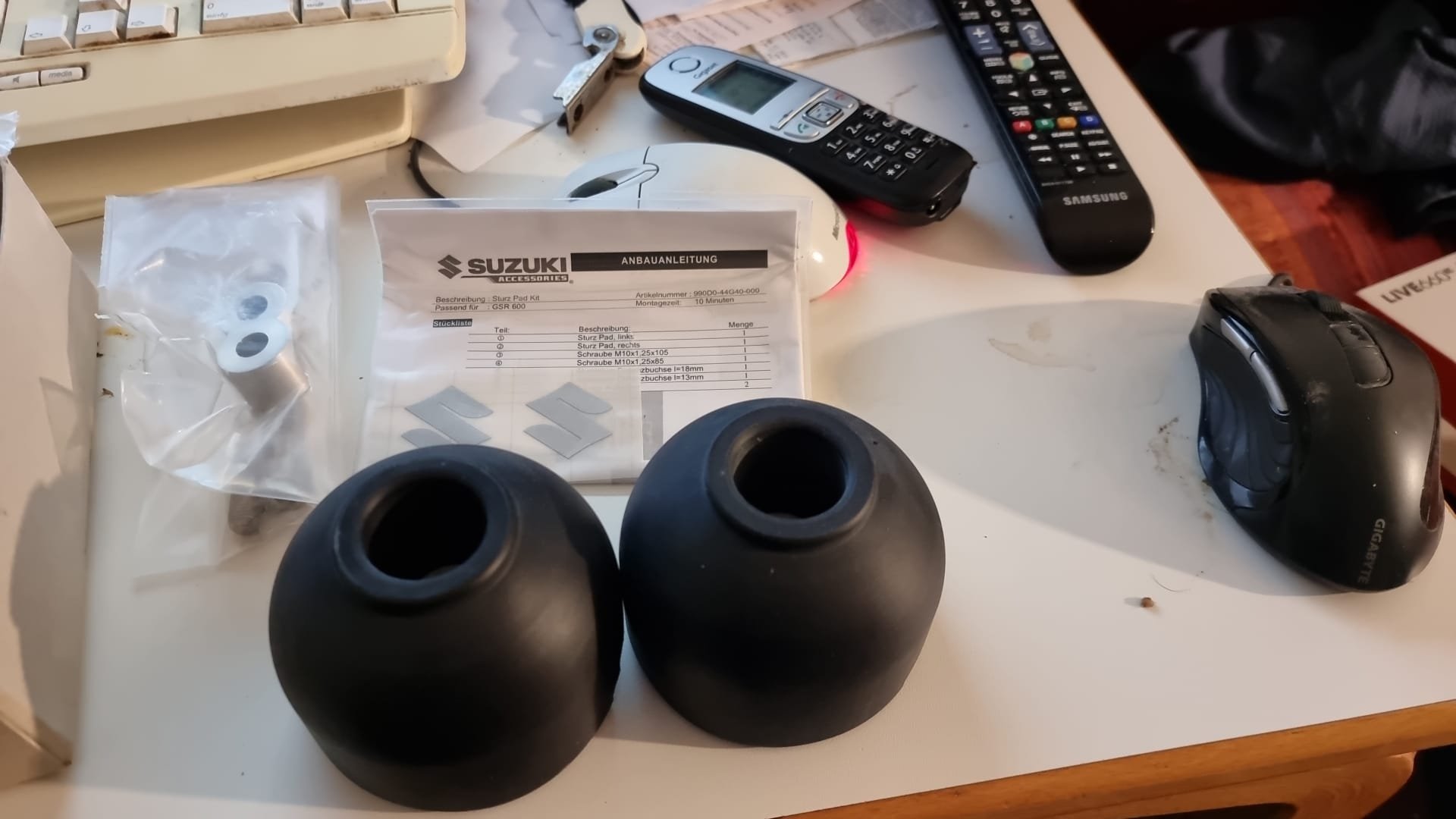 Ich habe mir sehr günstig original Suzuki Sturzpads besorgt. Groß wie Wassermelonen.