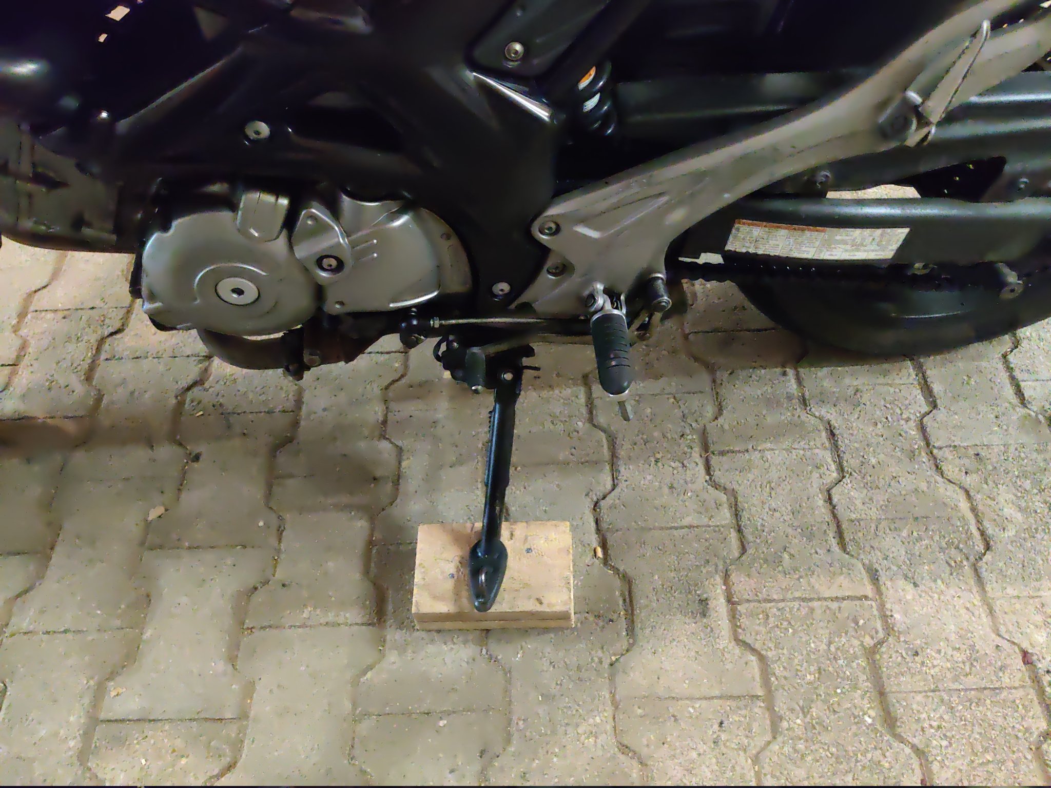 Noch eine weitere Modifikation, um das Bike schnell mal gerade zu stellen, für Ölstandkontrolle oder zum Aufbocken mit einem Heckständer. Alleine vom Seitenständer aus ist das doch jedesmal ein Gefummel und ein banges Durchatmen, ob alles gut geht. :?