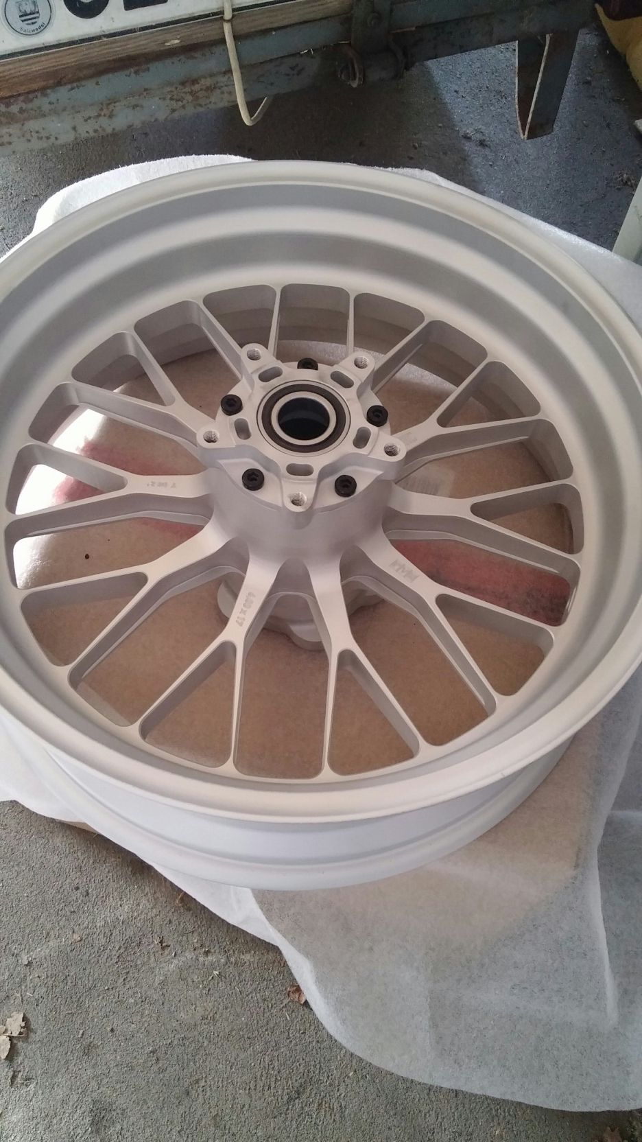 Beide Felgen habe ich Glasperlengestrahlt, somit sind die nun bereit zum Beschichten.