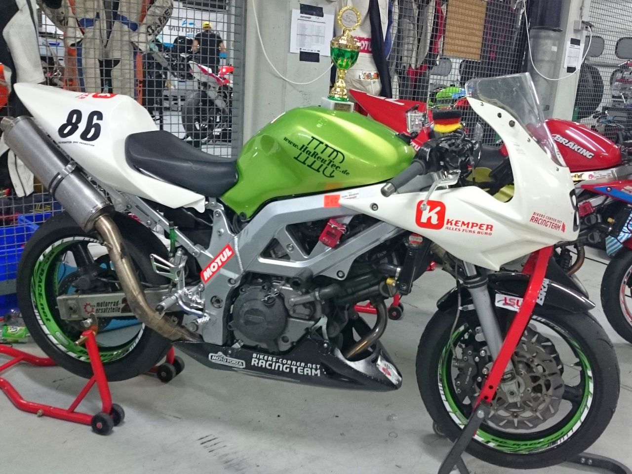 Die SV war technisch wieder fit und optisch "neu" gestaltet. Da ich nach dem Hockenheim Event direkt weiter in die Dolomiten zur Sommertour gefahren bin, hatte ich meine Straßen SV auch dabei. Sie stand dann schön neben den anderen SVs in der Box