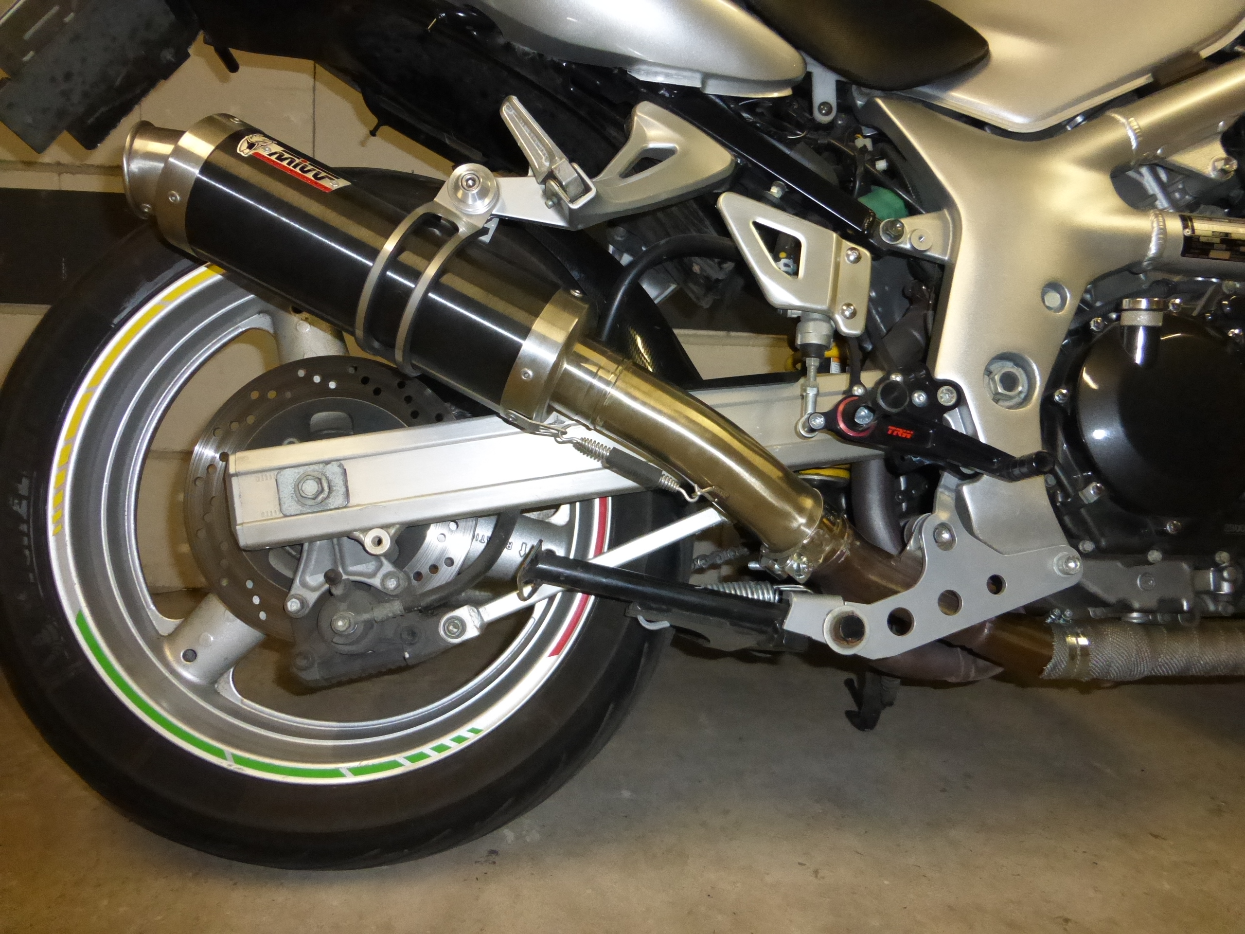 Wenn ich den Auspuff so dran mache hängt der ziemlich unter Spannung damit ich den Halter fest bekomme und zwischen Auspuff und Schwinge ist noch ca 2mm Luft finde das alles etwas merkwürdig :?: