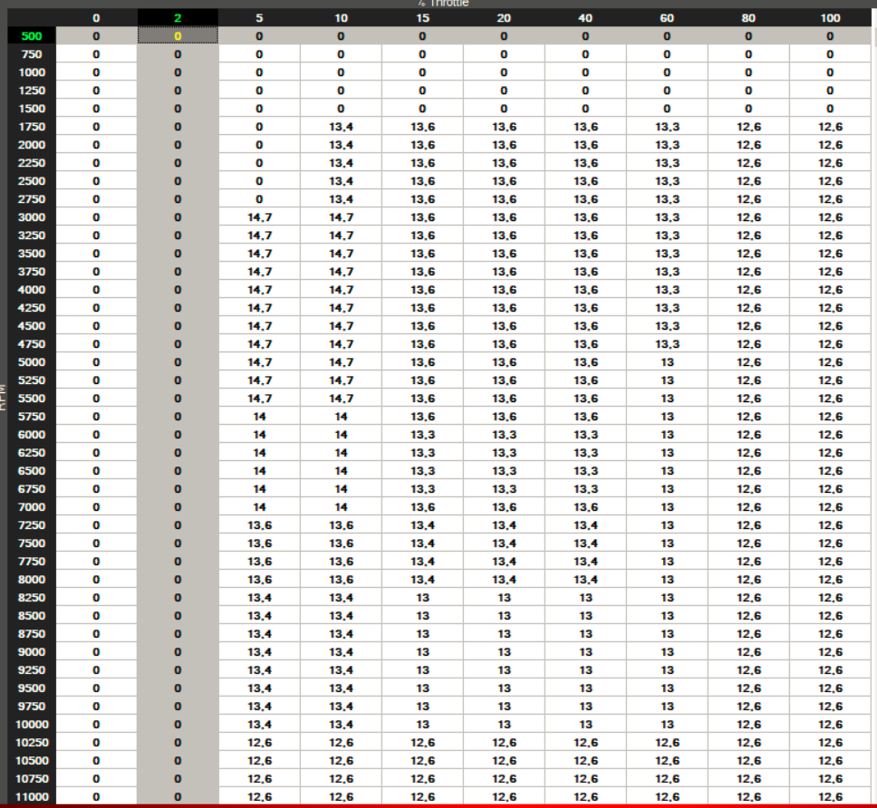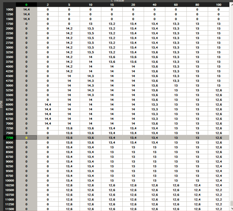 Die AFR-Table sieht mittlerweile so aus: Die Fuel-Table so: