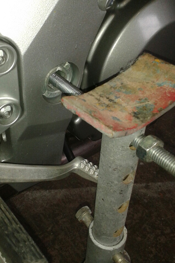 Wie auch immer man es macht - die Schwinge muß frei hängen - man kann das Mopped auch aufhängen etc....aber macht es stabil...bringt nix wenn man 200€ sparen möchte und das Mopped dann auf der Seite liegt....schlimmstenfalls auf Dir drauf....