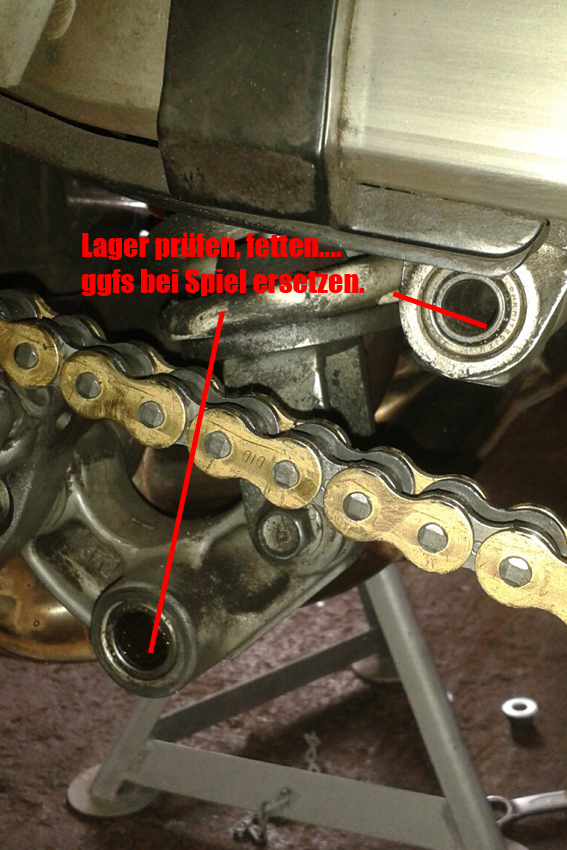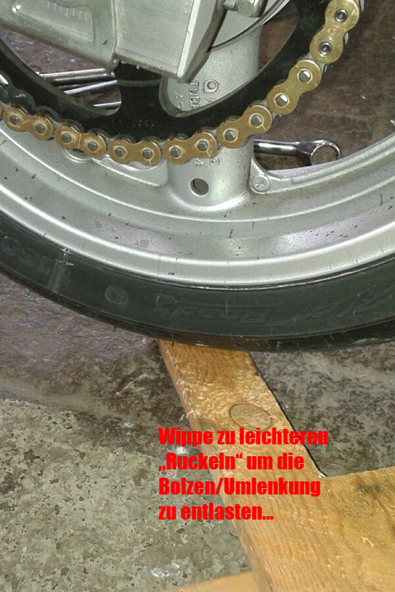 Kettenspannung prüfen und ggfs. korrigieren, Mopped von den Böcken holen....Fertig