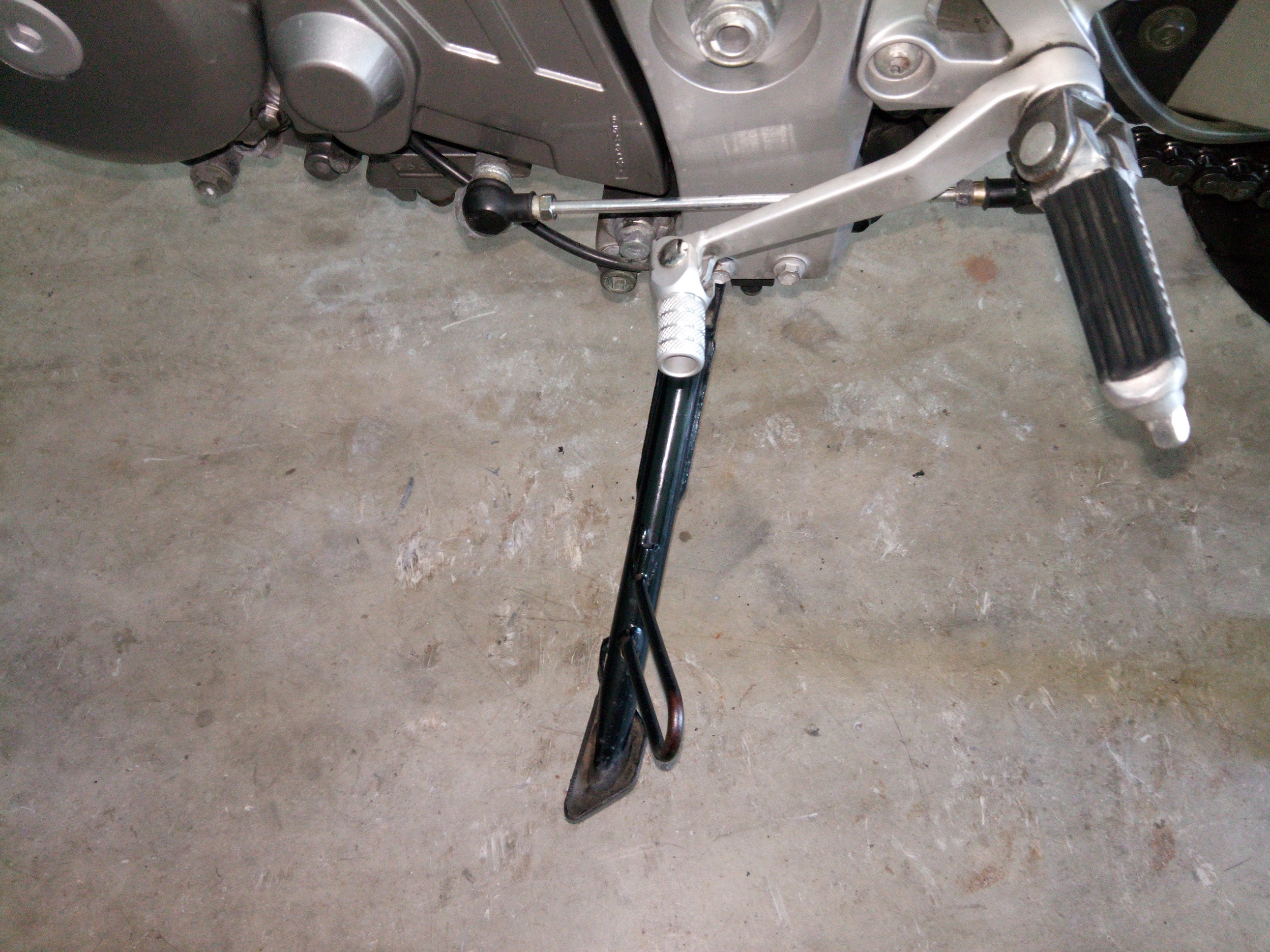 seit einiger Zeit wundere ich mich über den Seitenständer meines Moppeds. Normal kenne ich es so, dass der Seitenständer entweder komplett aus- oder eingeklappt ist. Alles, was dazwischen ist, wird durch die Federn in die entsprechende Position gezogen.
