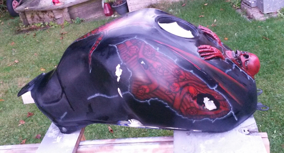 Auf den grundierten Tank sieht der Knochenmann richtig gut aus!!