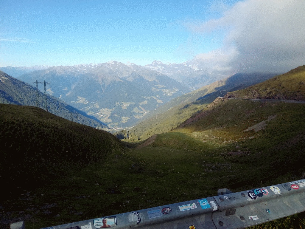 Ich fahre weiter, die Straße ist gut und schön, es geht in Serpentinen bergab, fast kein Verkehr bis auf den südtiroler Reisebus der mich fast in ner Rechtskehre in die Pampa schickt.
