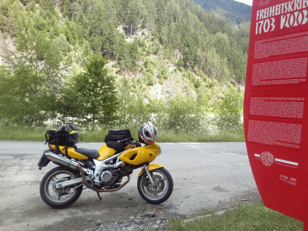 Irgendwo zwischendurch fahre ich raus, ne Brücke über den Inn, ich muß mal stehen bleiben; Die Stelle habe ich gut gewählt, dort steht ein Denkmal das an die Tiroler Freiheitskriege erinnert.