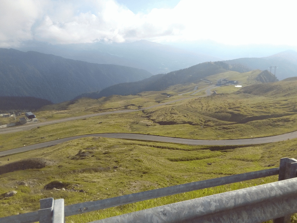 Ich fahre weiter, die Straße ist gut und schön, es geht in Serpentinen bergab, fast kein Verkehr bis auf den südtiroler Reisebus der mich fast in ner Rechtskehre in die Pampa schickt.