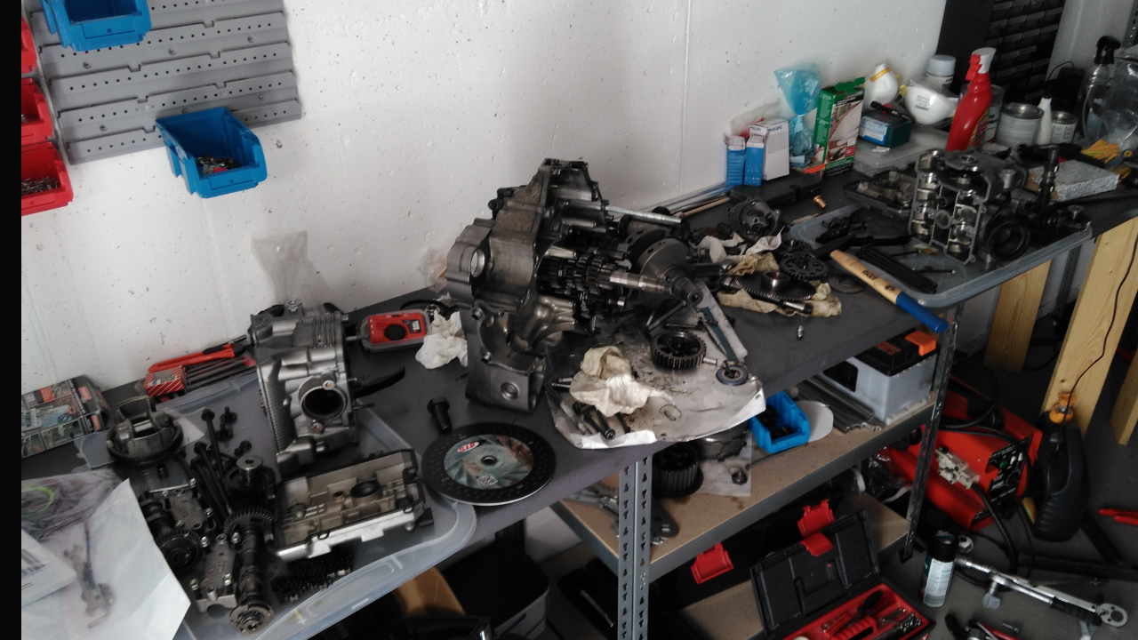 Jetzt heißt es wieder zerlegen, dichtflächen sauber machen, köpfe fertig bearbeiten, alles innen zusammen bauen und dann wieder zusammenstecken...