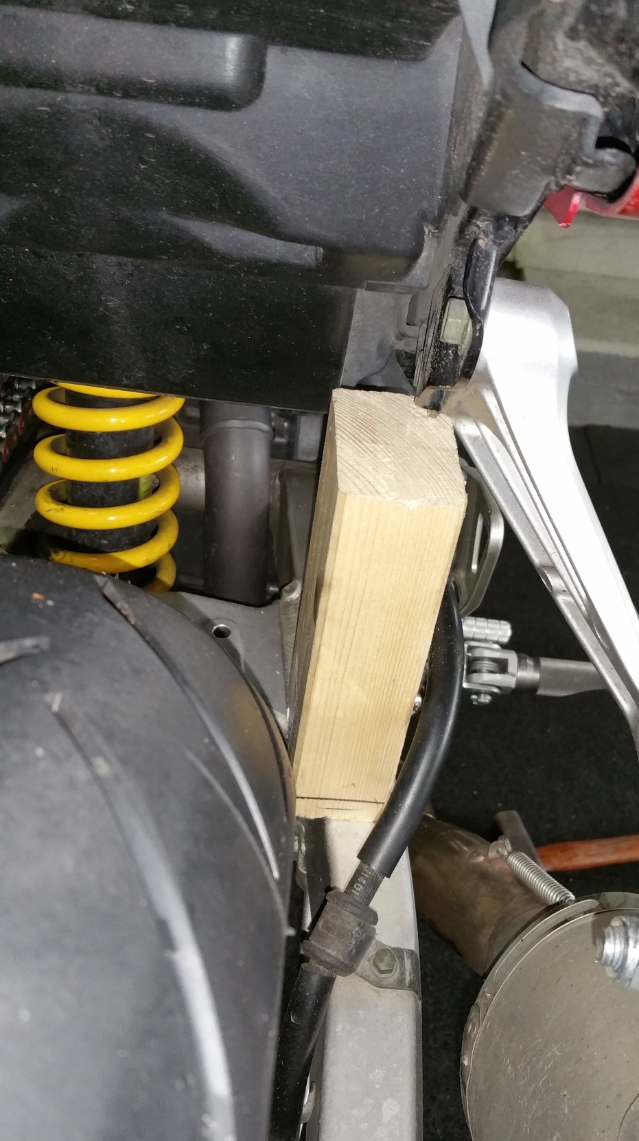 Notlösung vom Auto verbaut). Heckrahmen hochklappen geht auch erstmal nicht, da ich die Schwinge gegen die, in Fahrtrichtung, rechte Soziusfußraste abgestützt hab. :roll: