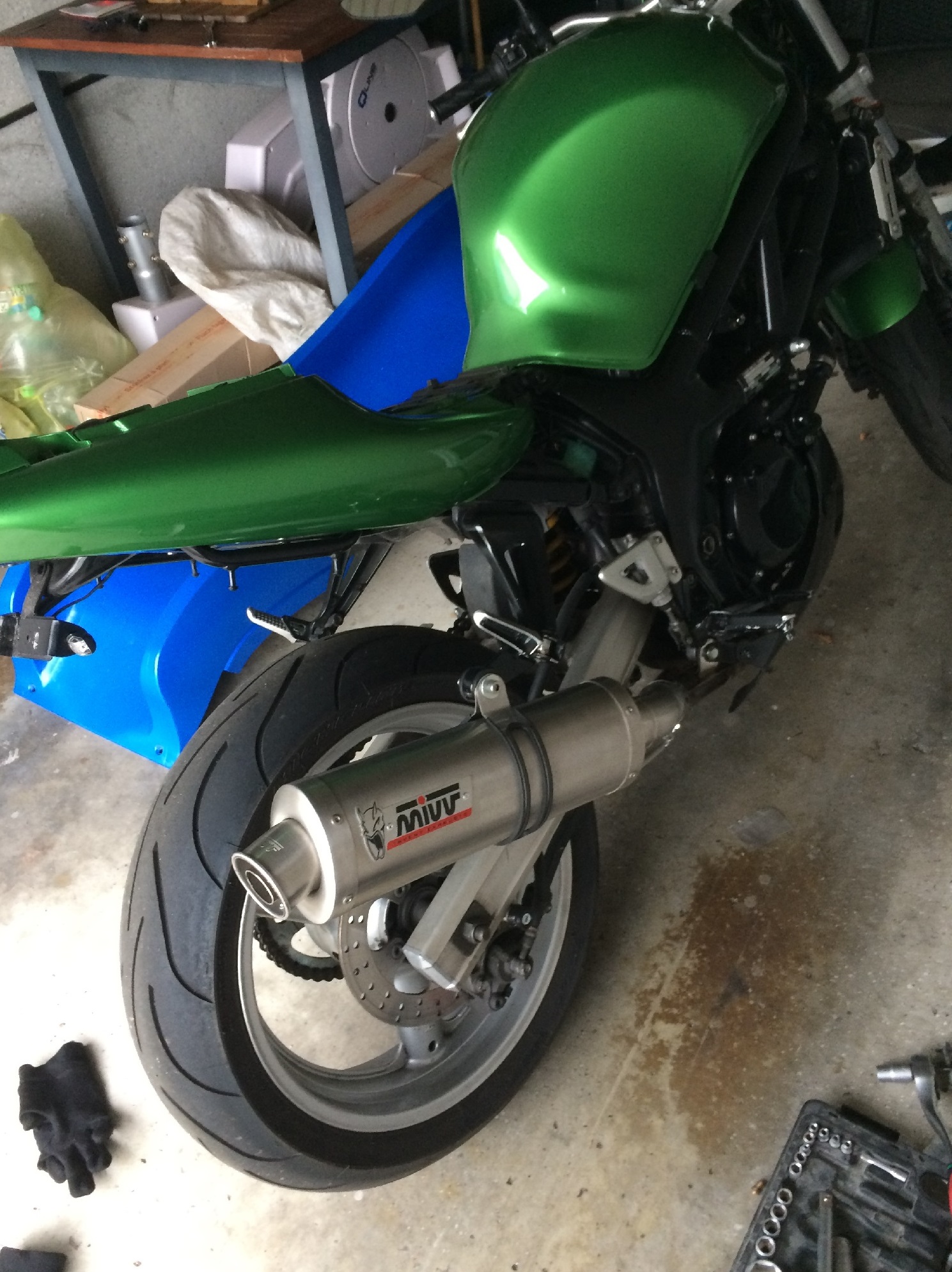 Der Auspuff war leider auch nicht zugelassen- Irgendein Scorpion mit DB-Eater Atrappe ;-). Nach langen überlegen ( Die Auswahl an Auspuffanlagen ist ja Recht groß), war ich fest entschlossen mir einen IXIL Extrem in schwarz zu kaufen. Doch da kam dieses 185€ Schnäppchen zwischen meine Finger. Da musste ich nich lange drüber nachdenken knapp 400€ gegen 185€ :wink: