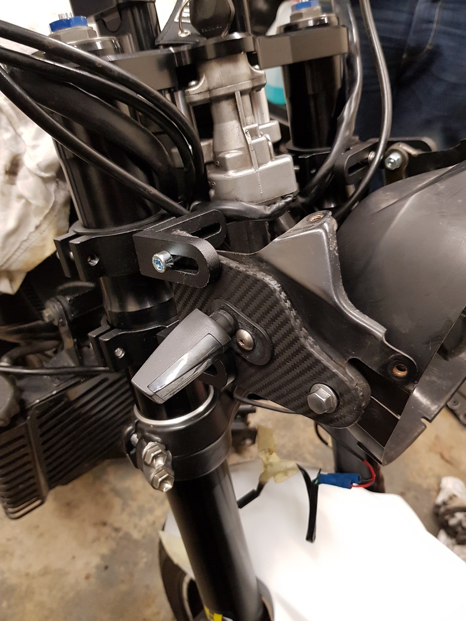 Gabel(untere Gabelbrücke wurde schwarz gepulvert)/ABM Gabelbrücke mit separaten Rizern für die N/weißen konifizierten LSL Lenker/ Bremsanlage der R1.... zusätzlich kam während des Umbaus dieses Jahr noch die Coolride Griffheizung , LED Scheinwerfer und `n Ganganzeige.