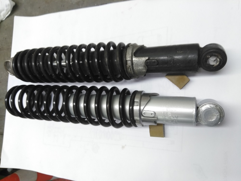 So auch hier geht´s langsam weiter……. Rahmen und Schwinge Sind wieder Ausgelagert und auch die Koni´s sind wieder seit heute in Bearbeitung. Nach Durchsicht aller Teile ist es technisch mit Reinigen und Abdichten getan. Hauptproblem werden die oberen Aufnahmen werden. Bisher ist noch alles möglich. Die Federn selbst werden nur mit Balistol gereinigt und gut ist.