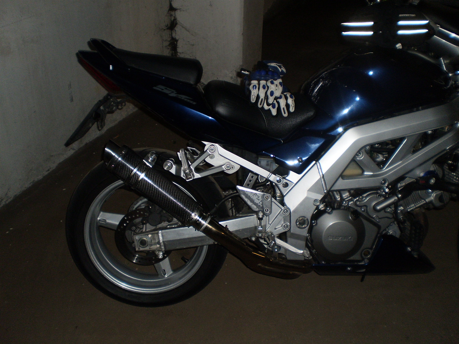 Bin dann beim Hurric SP Carbon 360mm gelandet. Dieser war im Vergleich zum Akrapovic genau so schwer. Der Sound war wie der Topf selbst absoluter Mist. Habe leider nicht mehr Fotos da dieser nach ca 500km sofort wieder runter kam.
