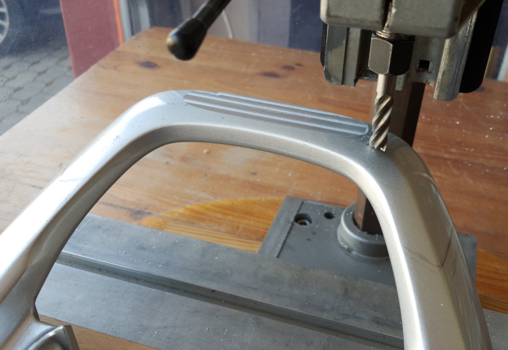 Position ist bestimmt, schnell sind 3 Löche gebohrt und Gewinde geschnitten.