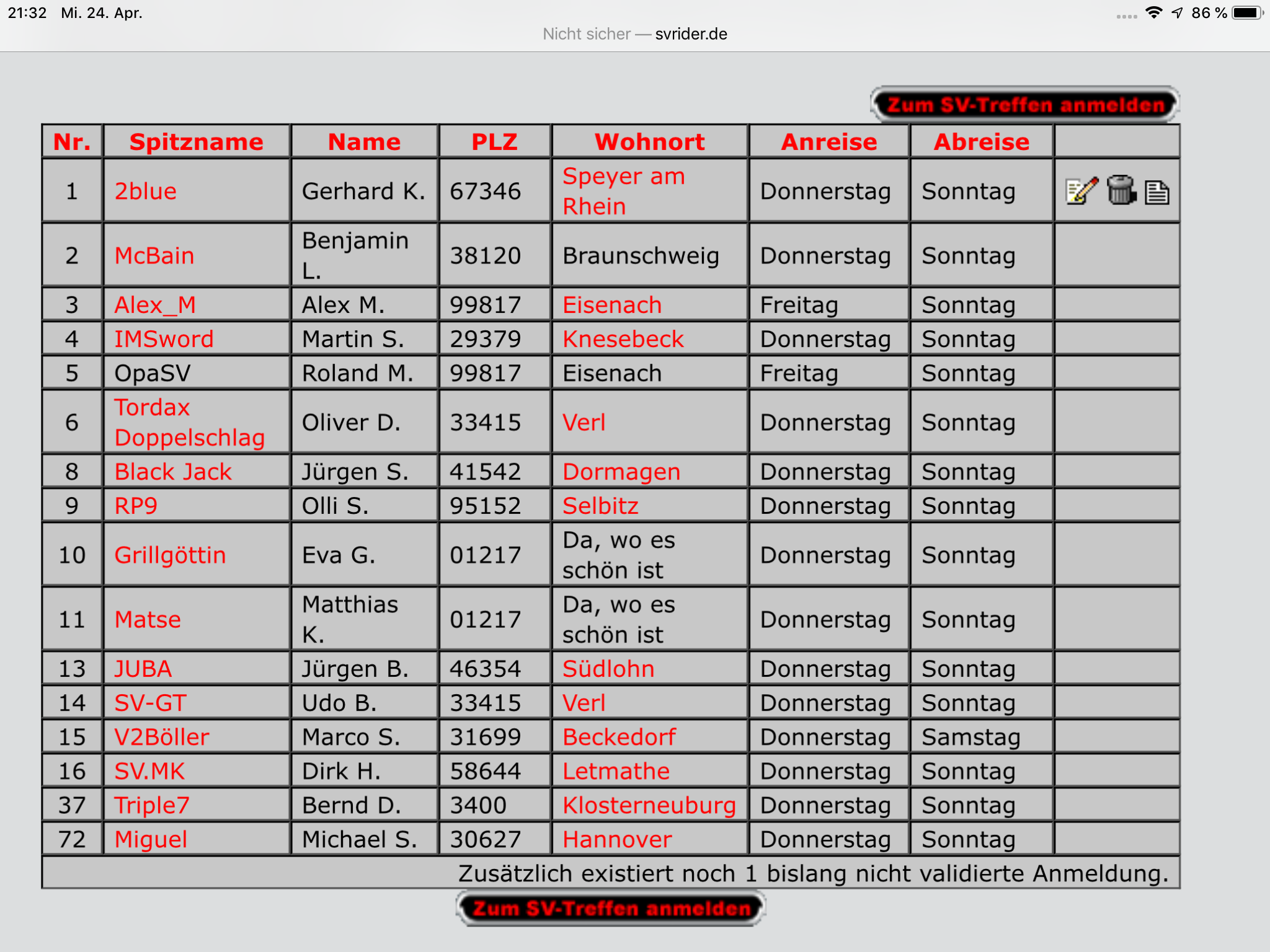 [SV-Treffen 2019] Anmeldung zum Treffen - Korrektur