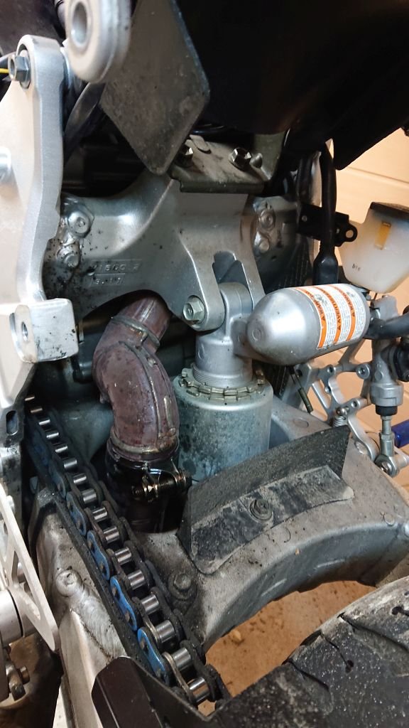 Ggf den Spritzschutz auf der Schwinge noch abmachen