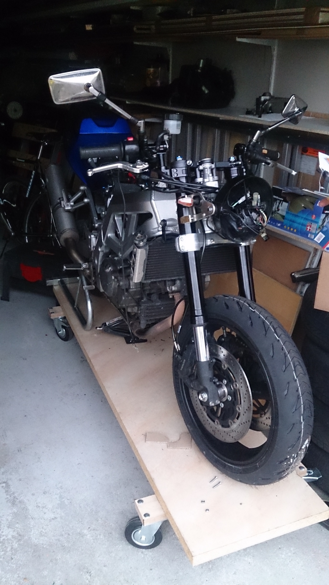Vor ca. 3 Jahren kam dann die Gelegenheit. Bullit hat seinen USD-Umbau aufgegeben und hat seine Teile angeboten. Die Gelegenheit war zu gut und seit dem hatte ich also eine K8 GSX-R 750 Gabel in der Garage stehen, inklusive Bremsanlage, Hallsensor + Magnete und einer 1200er Banditfelge.