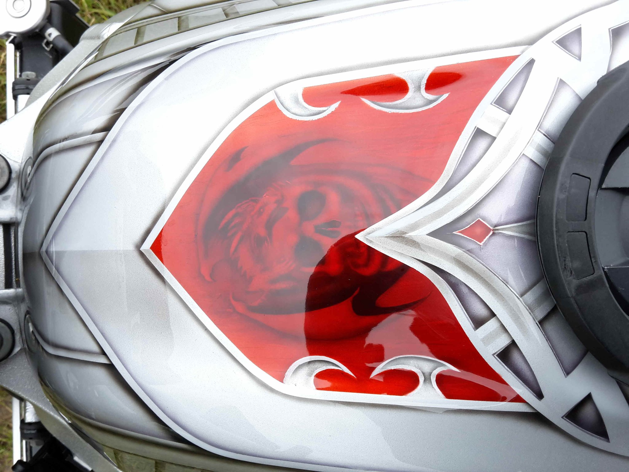 Ist jetzt nicht ganz mein Geschmack - aber hast du die Airbrush selbst gemacht ? Falls dem so ist - fetten Respekt für die künstlerische Leistung!! ;) bier