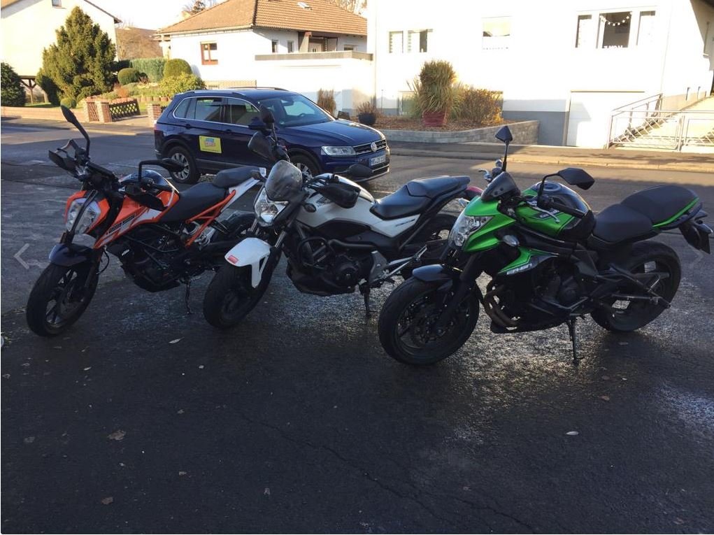 Die erste Fahrt mit einer KTM Duke 125; alle weiteren mit einer offenen Kawasaki ER6N