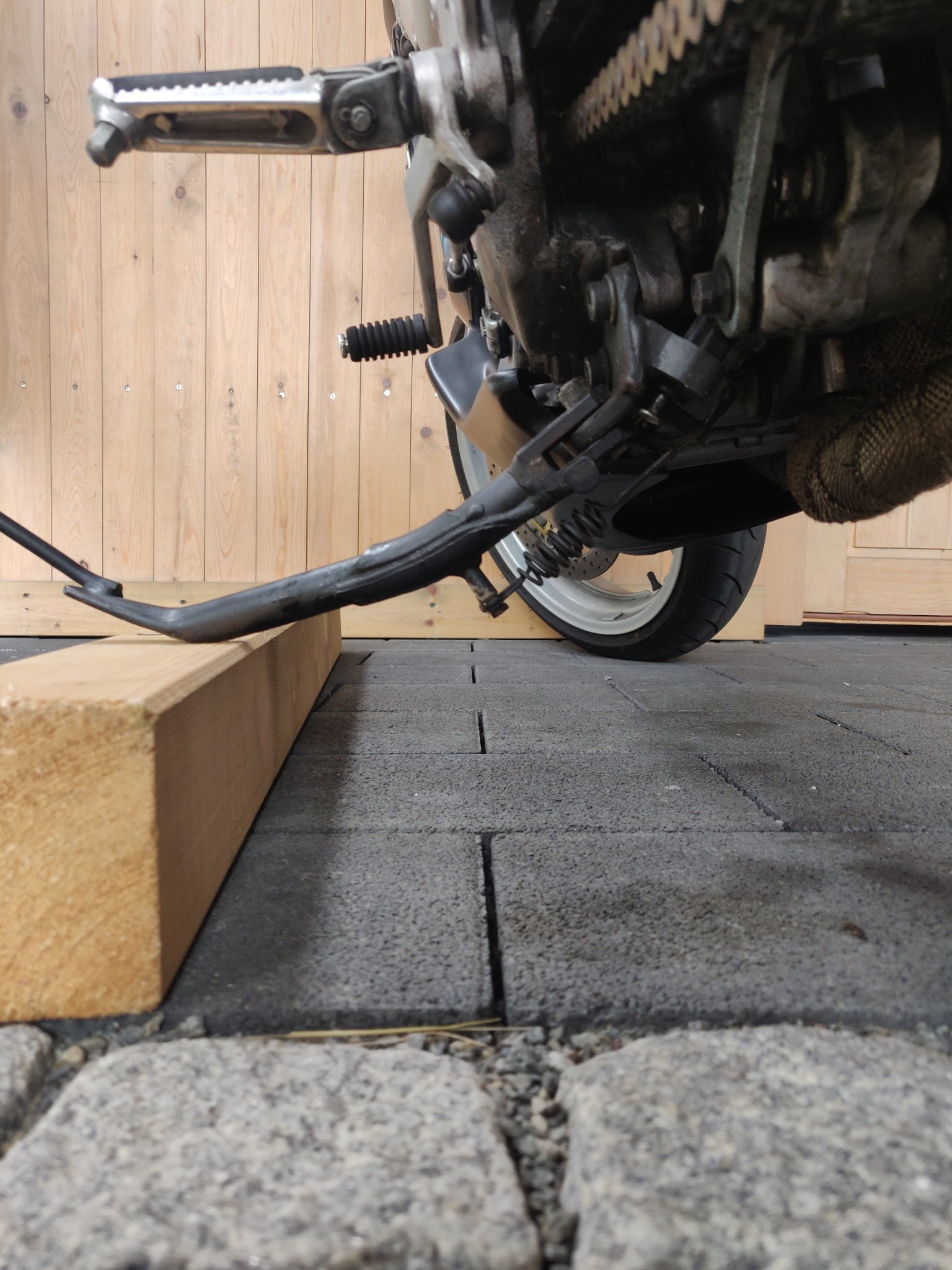 Was ich im ersten Foto so komisch finde ist, dass der Seitenständer quasi Rechtwinklig zur Schwinge steht,