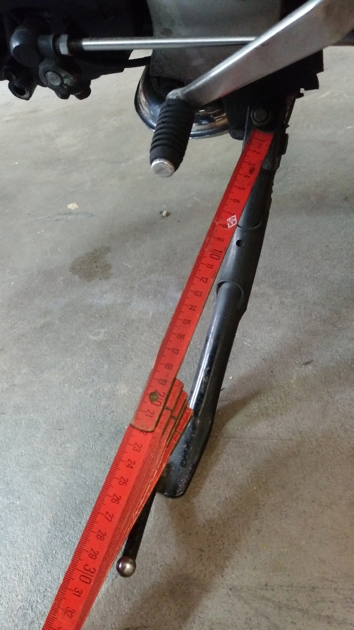 Was ich im ersten Foto so komisch finde ist, dass der Seitenständer quasi Rechtwinklig zur Schwinge steht, während beim Foto von Pat der Seitenständer "normal" aussehende 40-50° (geschätzt) zur Schwinge hat. Es sieht so aus, als ob der Seitenständer mit der Hinterachse genau eine Fluchtlinie bildet. Unabhängig ob die hoch- oder tiefgelegt wurde, sollte der Seitenständer nicht in so einem Winkel abstehen. Da ist ja kein Wunder dass sie, wenn der Ständer gleich lang bleibt, wesentlich schiefer steht wenn der Winkel größer wird.