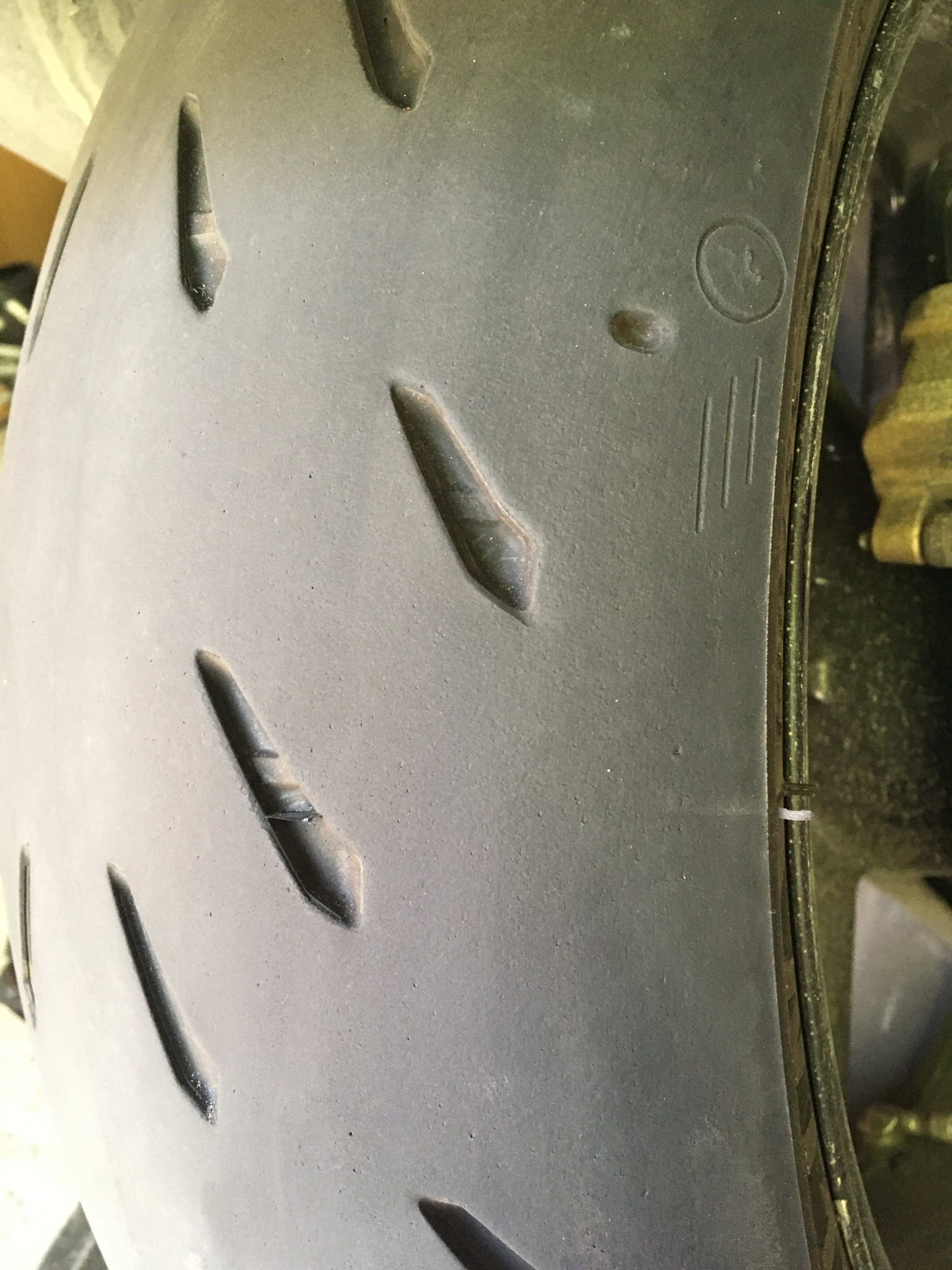 der reifen sieht aber total unbeeindruckt aus. der road hatte nach genau dieser runde immer gummiröllchen im profil. auch vorne.