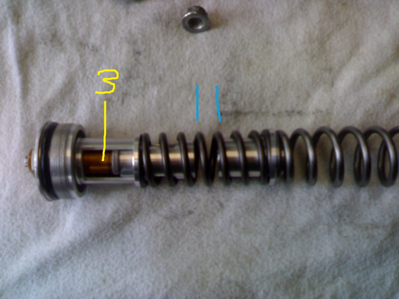 1. kurze feder (das gleiche teil war die zusatzfeder beim R1-gabelumbau)