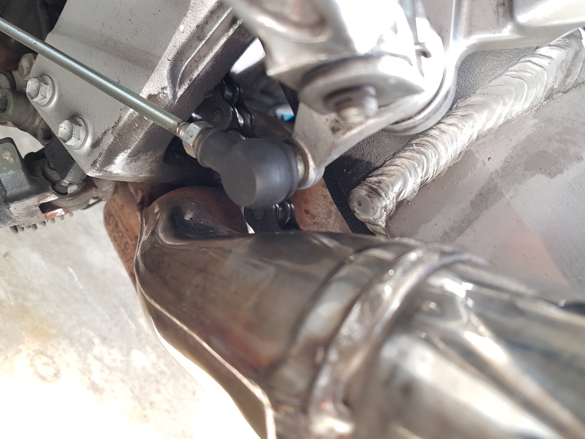 Ein längeres Schaltgestänge würde nichts bringen, da die Kugelpfanne dann beim runterschalten an das Rohr vom Auspuff stößt und der Gang nicht reingeht.