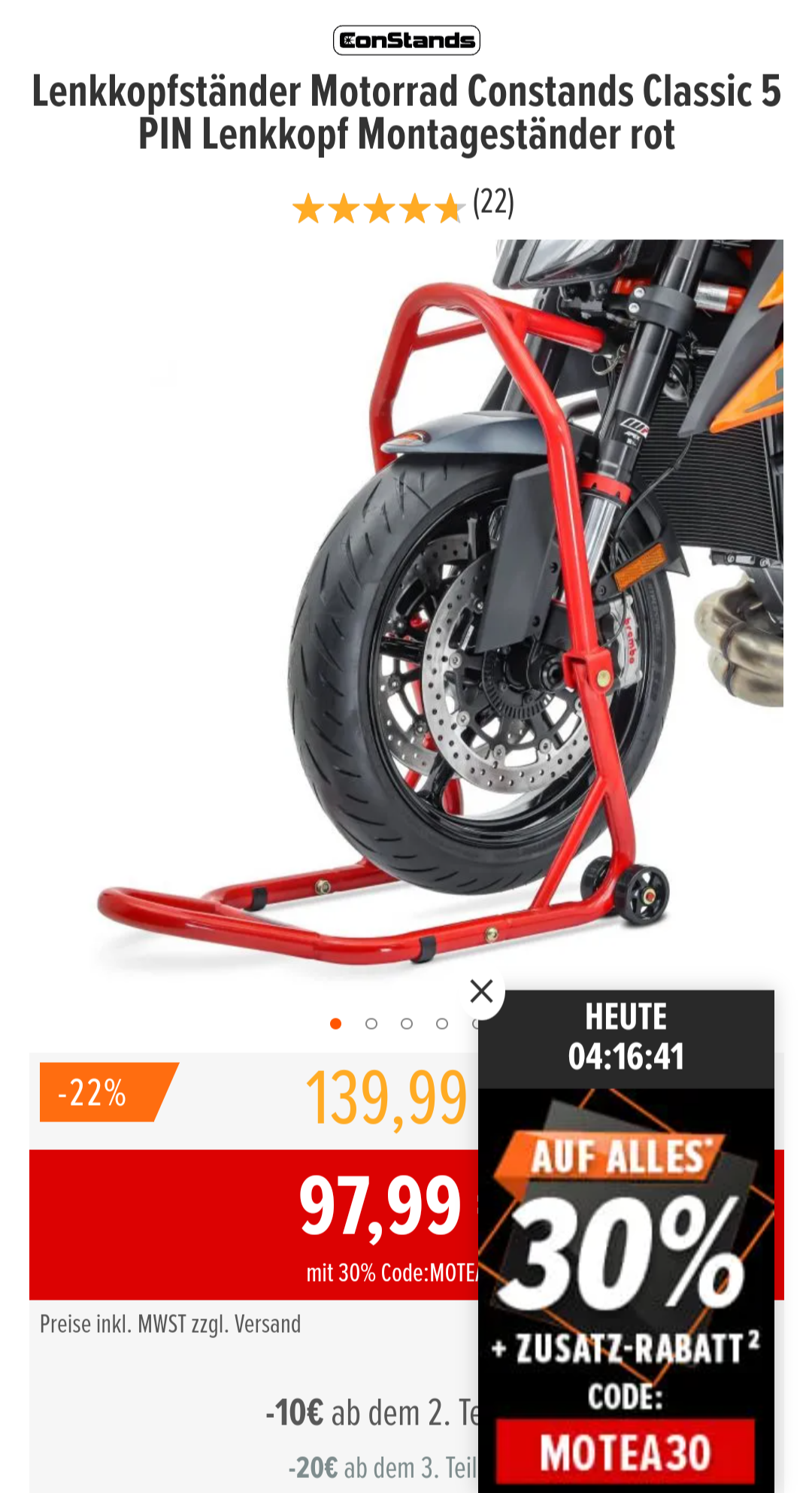 Front- und Heckständer habe ich, auch in rot. Ich muss mal versuchen rauszufinden von welchem Hersteller und ob es den Aufsatz für den Lenkkopf separat gibt, also das Gestänge zwischen eigentlichem Heber und dem Lenkkopf. Weiß da jemand was?