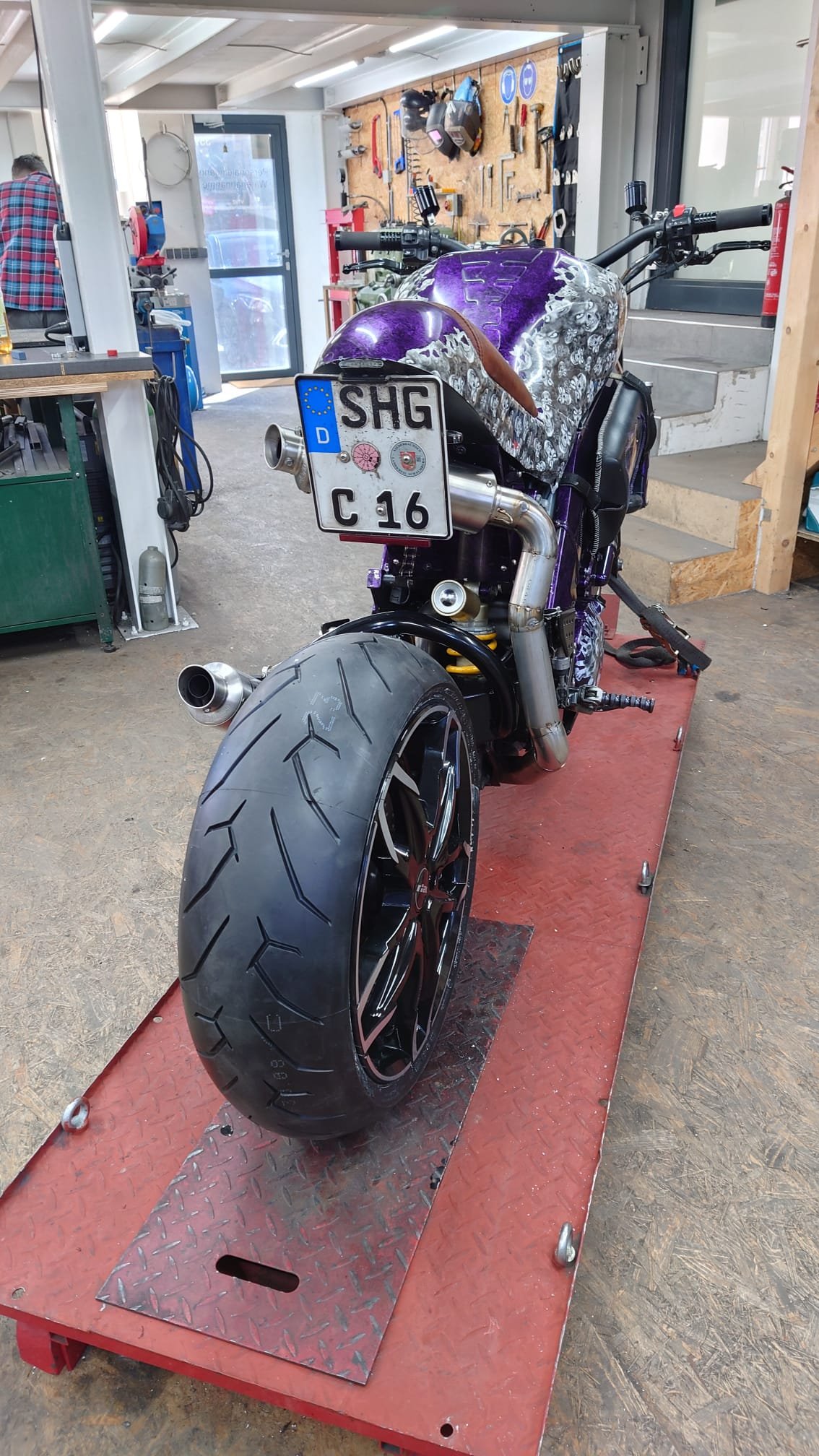 Der Auspuff ist, wie so vieles, Geschmackssache. Für beide Töpfe war unterm Höcker kein Platz. Also musste ne andere Lösung her.
