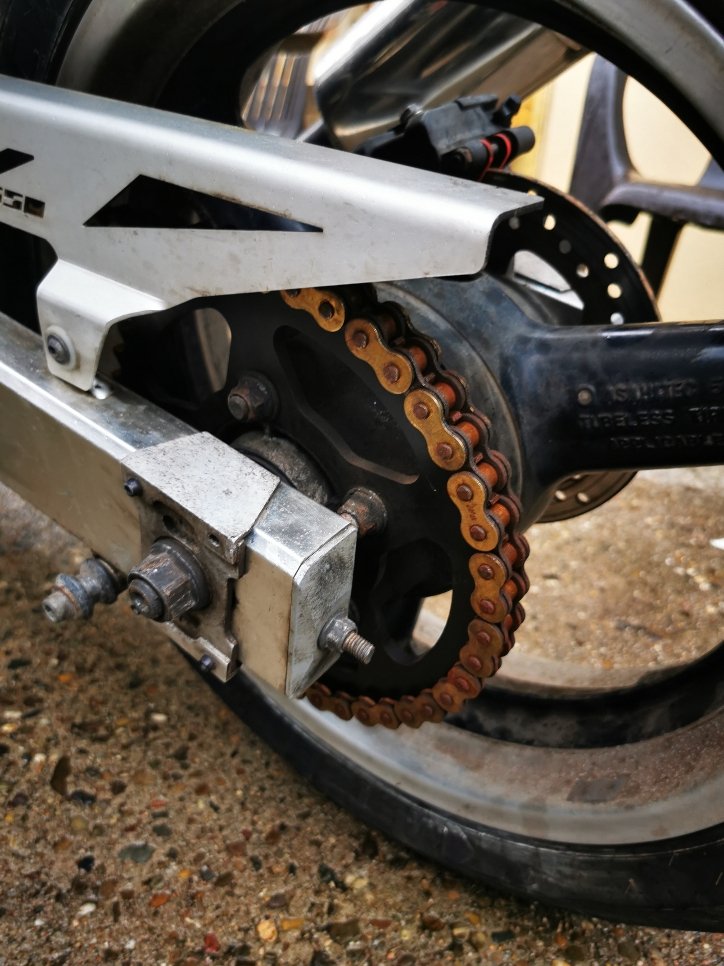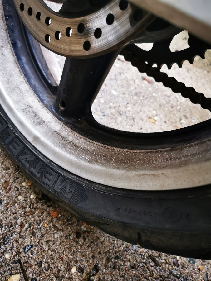 Kette, Gabelbrücke und die ehemals polierten Felgen sagen schon viel über den Pflegezustand aus.
