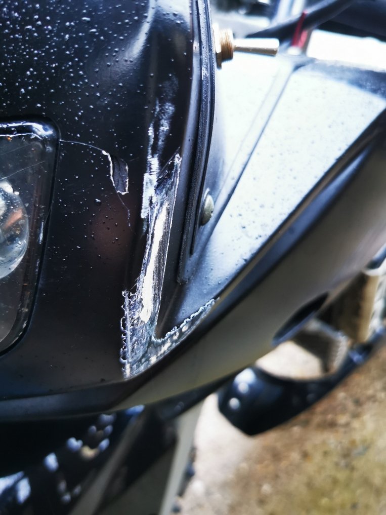 Da meinte sie, dass es aber eine ziemlich schnelle Wand gewesen sein muss. Die Kratzer stammen nämlich von meinem Highsider in Hockenheim 2013. 😂🤣