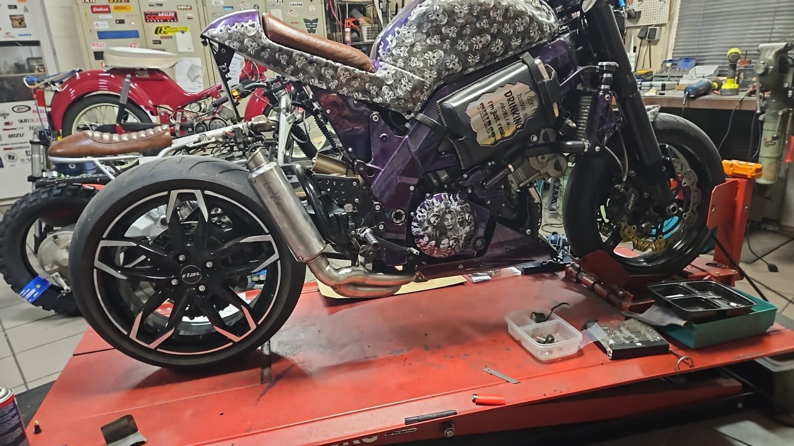 Nachdem durch meinen Schwingenumbau auch die Auspuffgeschichte neu angerichtet wurde, überlege ich die Töpfe nochmal anders zu verlegen. Das Aktuelle ist nicht so wie ich mir das gedacht habe.